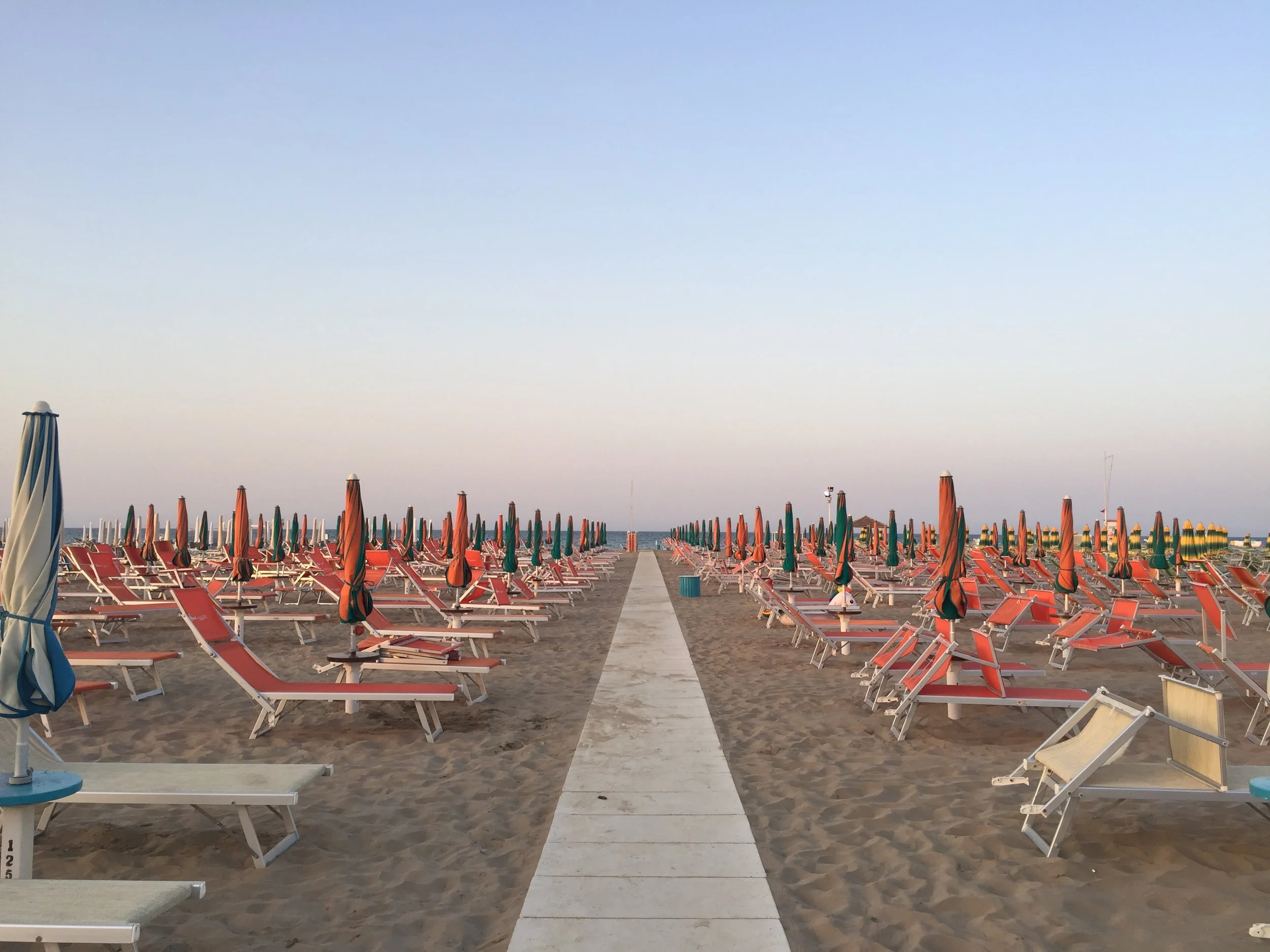 Al día siguiente continuamos nuestra ruta a Rimini. La razón por la que quería conocer Rimini era por su fama en los 60's como el lugar de vacaciones de la sociedad Italiana. Kilómetros de playa bañada por mantos de colores que no son nada más y nada menos que tramos y tramos, y más tramos de sombrillas alineadas perfectamente de principio a fin.