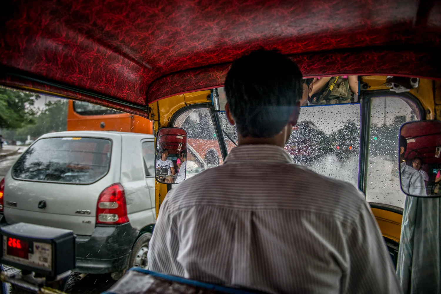 Algo que aprendí es que hay que tener mucho cuidado cuando quieren llevarte a la “oficina de turismo” para que obtengas información, en realidad quieren llevarte a alguna agencia de viajes encubierta y no a un organismo oficial. Allí te van a decir que todos los tickets de tren están agotados, incluso te van a mostrar fechas y horarios en una pantalla, y van a intentar venderte un auto con chofer y los hoteles para todo tu recorrido por India. Yo no caí pero muchos europeos con mochila son presa de estos engaños. Después de este episodio decidí que basta de taxis por el día, son agotadores. Me tomé el metro hasta la estación más cercana a donde quería ir y la lluvia era cada vez más intensa. Mientras esperaba que pare de llover conocí a una pareja de recién casados que me salvaron el día. Estuvimos charlando bastante antes de intentar llegar a la tumba de Humayún, porque oh casualidad ellos iban al mismo lugar (fue la segunda vez en el día que pensé que me querían secuestrar). No llegamos, estaba todo inundado y pasé por lugares inimaginables con el agua hasta las rodillas.